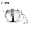 The Bergner Argent Tri‑Ply Stainless Steel Rice Handi (BGIN‑6303, 24 cm, 5.5 L; Max 6.5 L) is a premium cookware piece designed for cooking fluffy rice and one‑pot meals with ease and precision. Crafted from high‑quality tri‑ply stainless steel with an impact‑forged bottom, it delivers even heat distribution and exceptional durability. The included hardy glass lid allows you to monitor cooking progress without lifting the lid, preserving moisture and flavor.