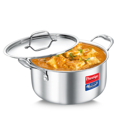 The Prestige 4.4 L Tri-Ply Splendid Casserole is perfect for family meals, batch cooking, and serving at the table. Its three-layer construction ensures even heating while preserving the nutrition and flavor of your dishes. Supplied with a durable stainless steel lid, this casserole brings performance and elegance to every kitchen.